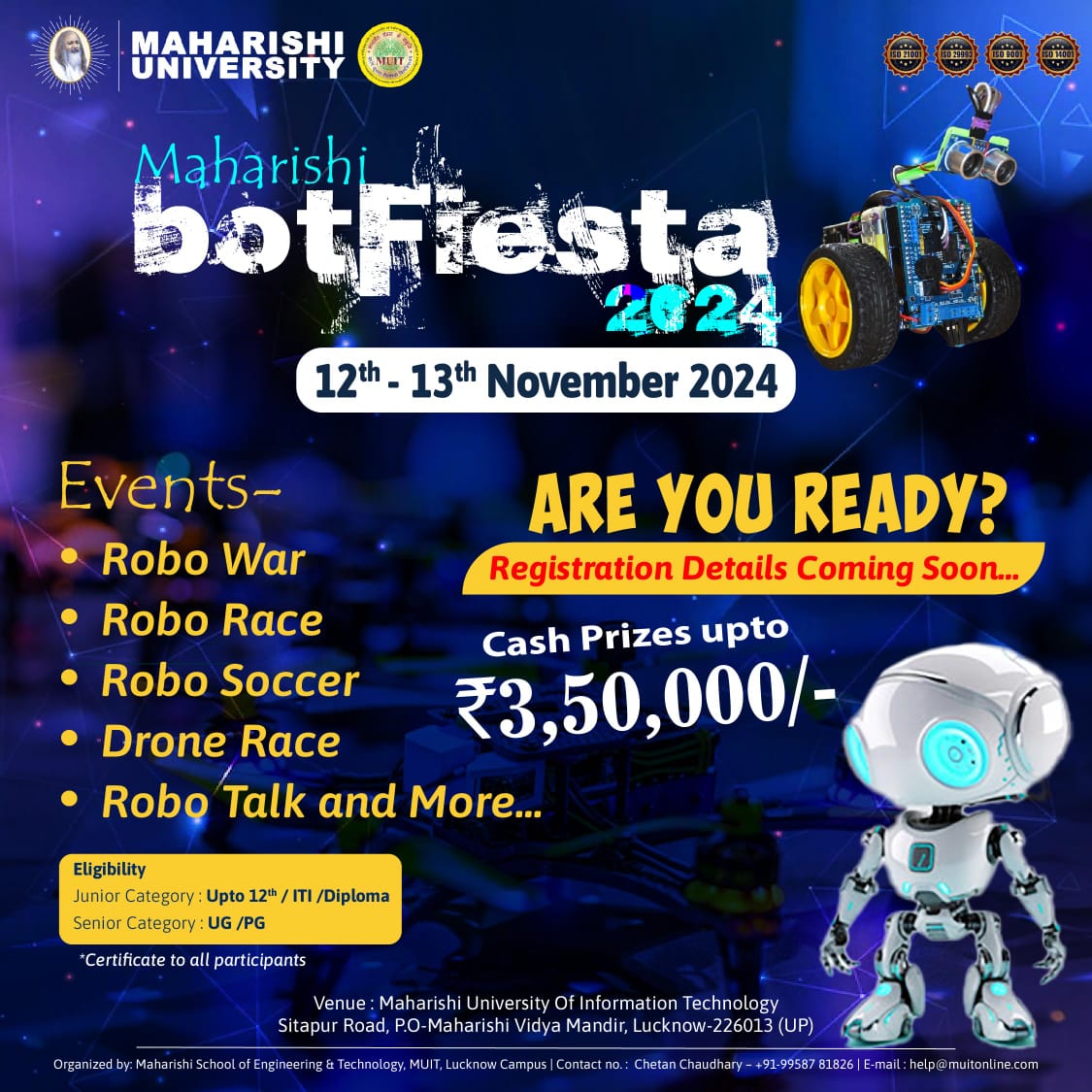 Get ready for the most thrilling robotics competition of the year — Maharishi botFiesta 2024 ! Scheduled for 12th - 13th Nov…